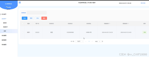 SSM应科二手购系统中的管理人员是可以对SSM应科二手购系统内的卖家发布的商品进行维护和管理的,支持增删改查操作。界面如下图4-11所示。