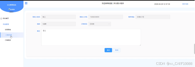 - 商城管理:管理员对卖家提交的商品订单进行管控,可以查看分类列表、订单列表、订单配送等详情,进行增删改查等操作。