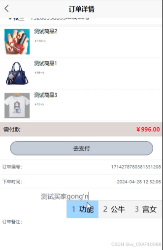 - 订单:点击“订单”可以查看用户自己已支付或待支付的商品信息。