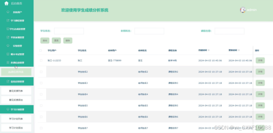 The student performance analysis system provides a variety of functions, including viewing the home page, personal center, online communication, learning courses, etc., to provide students and parents with comprehensive performance analysis system services. Administrators are responsible for storing, managing, and maintaining systems securely and efficiently, while having complete control over back-office operations to ensure the proper functioning of the system.