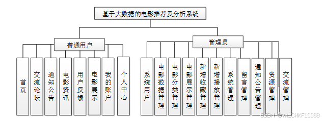 电影推荐及分析系统我划分为了普通用户模块和管理员模块这两大部分。
