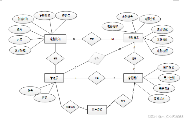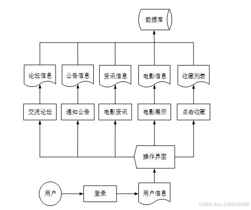 电影推荐及分析系统是中需要存储不少电影资讯,其模块功能结构,具体的结构图如下:
