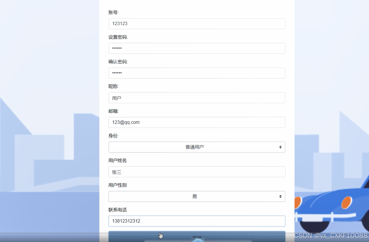 注册登录:提供普通用户注册新账户并进行登录的功能,以便能够访问系统的各项功能和个人信息。