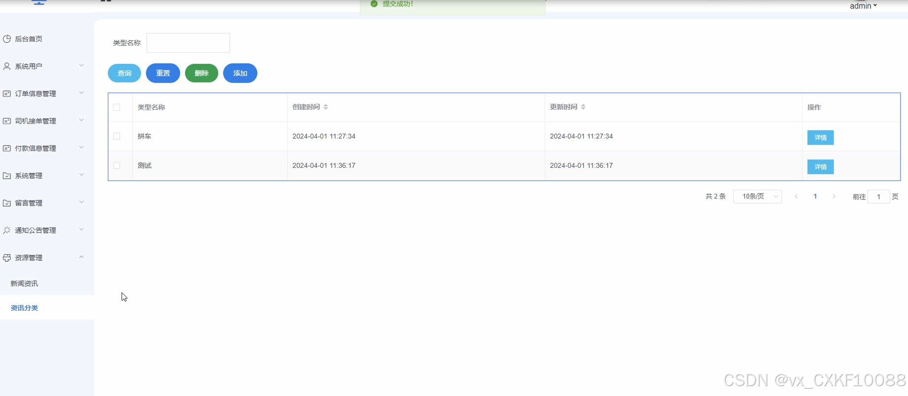 资讯分类:管理员需要能够管理新闻资讯的分类信息,包括添加、编辑、删除分类,以维护信息的组织和整理。界面如下图所示。