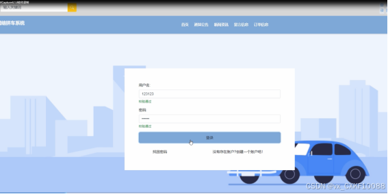 首页:展示系统的主要内容和功能入口,包括拼车信息、通知公告、新闻资讯等,让用户快速了解系统的内容和最新动态。