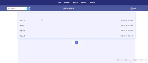 通过通知公告功能,学校可以发布重要通知和公告信息,如迎新事项、政策变动等。这些公告可以在用户首页或专门的公告页面上展示,提供给用户及时获取学校相关信息的渠道。通知公告功能能够有效传达学校的重要信息,帮助新生和其他用户了解学校的最新动态,并做出相应的准备和安排。界面如下图所示。