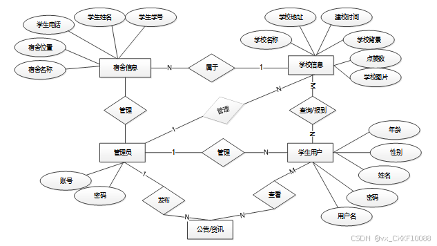 宿舍信息管理:管理员可以管理宿舍信息,包括宿舍分配情况、宿舍规定等内容。