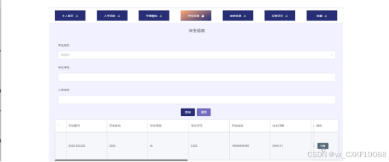 学生信息管理:管理员可以管理学生的学籍信息,包括个人资料、专业信息等。
