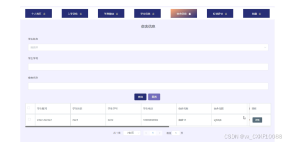 宿舍信息模块的设计旨在提供清晰、准确的宿舍分配信息给新生。该模块通过直观的用户界面展示宿舍楼、房间号以及室友的基本信息,确保新生能够快速了解自己的住宿安排。面如下图所示。