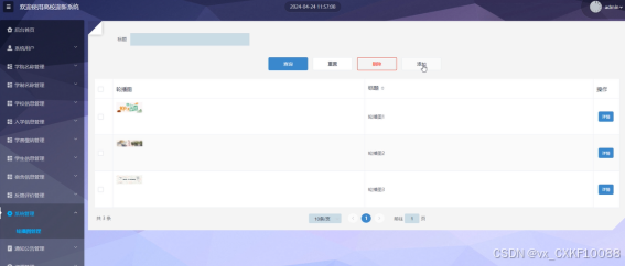系统管理:管理员可以管理系统首页的轮播图信息,包括上传新的轮播图片、编辑轮播图片信息、删除不需要的轮播图片等操作。