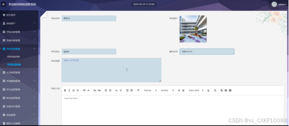 学校信息管理:管理员可以管理学校的基本信息,包括编辑学校介绍、更新联系方式等。