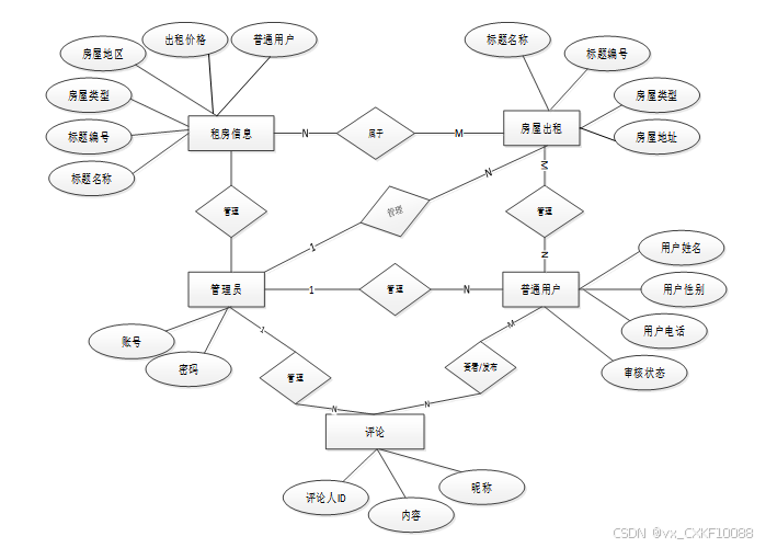 下面是整个北京市房屋租赁系统中主要的数据库表总E-R实体关系图。