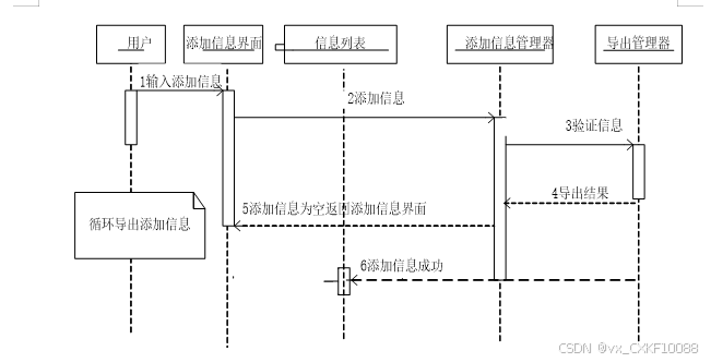 管理员以及用户登录后均可进行添加信息操作,添加信息模块顺序图如图4-4所示。