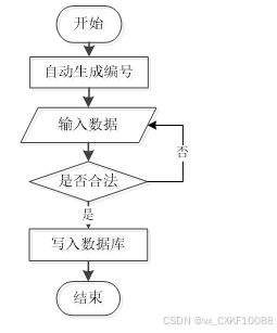 用户成功登入系统后就能够实现增加数据的操作,增加数据的编号是特定的,系统生成,用户不能随意填写,除了编号以外,其他增加信息用户自己填写,填写后的信息经过系统验证,验证合法通过就显示增加数据成功了,相反的话,就没有增加成功,图2-1显示的就是在增加数据时的流程。