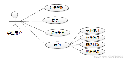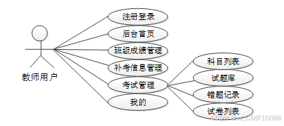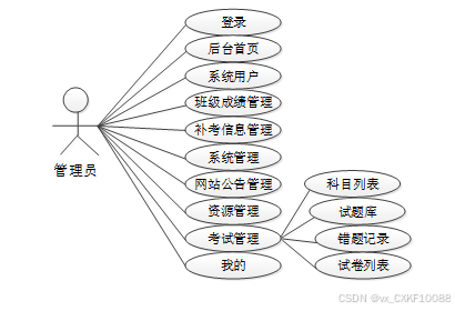 通过2.3功能的分析,得出了基于小程序的在线考试系统的用例图: