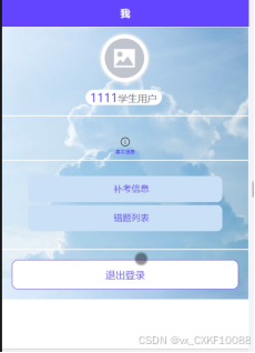 - 我的:用户点击首页右下角“我的”进入页面可以查看和管理基本信息、补考信息和错题列表信息。点击“退出登录”即可退出系统。