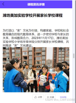 - 课程资讯:用户可以查看课程资讯列表中某个资讯详情并可以进行点赞、收藏和发表评论操作。