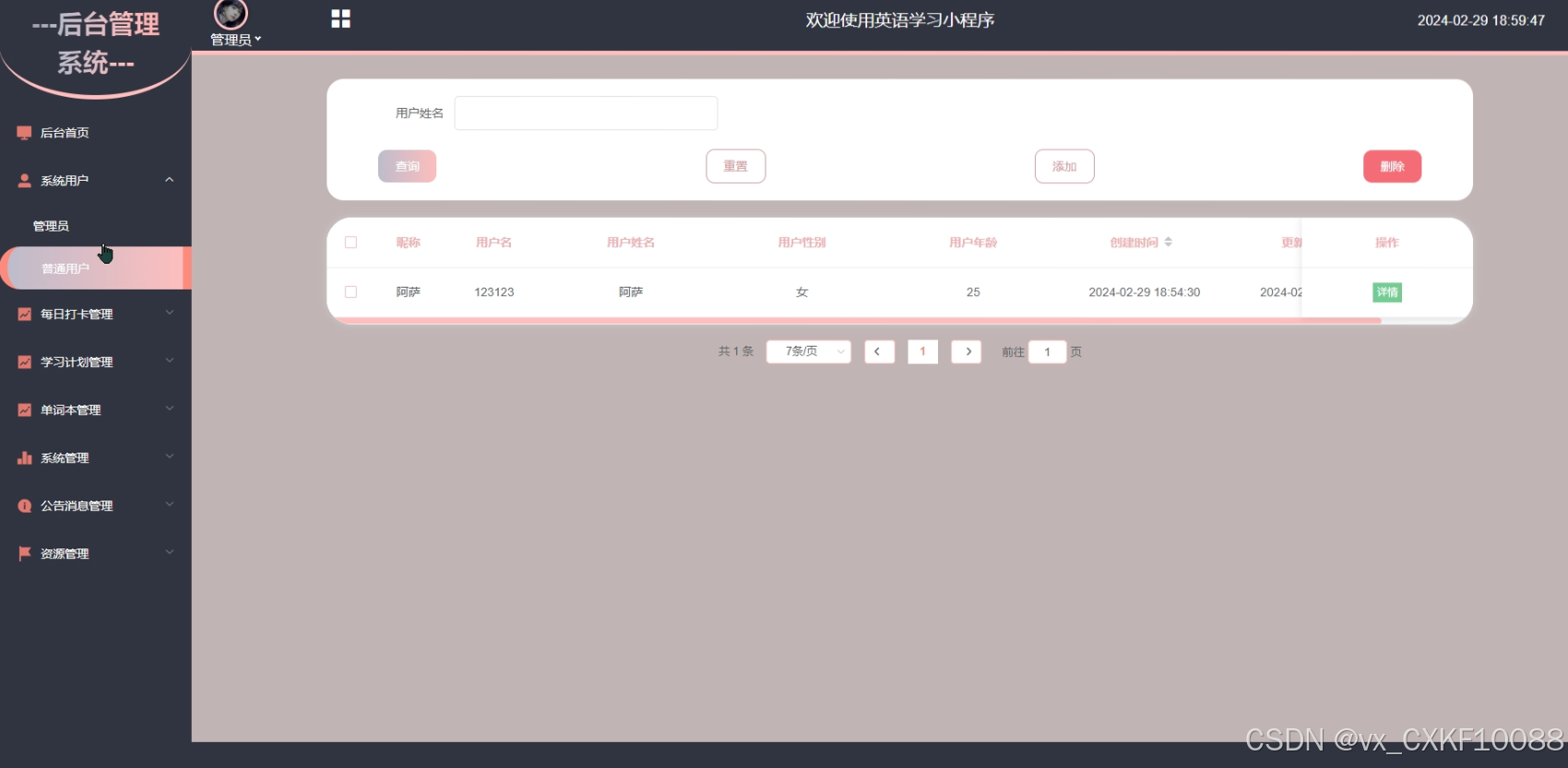 系统用户:包括用户账号的添加、编辑和删除操作,可以查看用户信息、修改用户权限、冻结或解冻用户账号等。系统用户界面如下图所示。