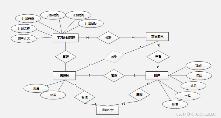(1) 英语学习小程序整体E-R图,如图4-3所示: