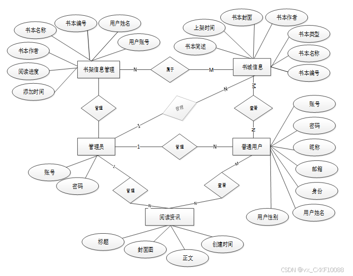 下面是整个基于微信的近邻儿童阅读小程序中主要的数据库表总E-R实体关系图。