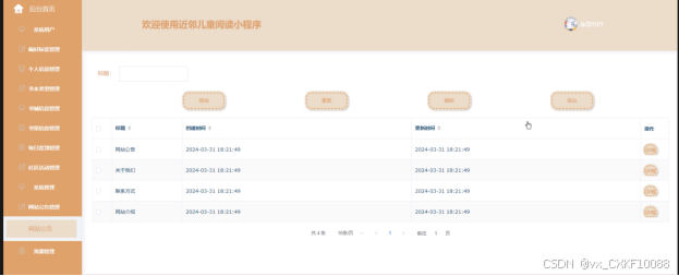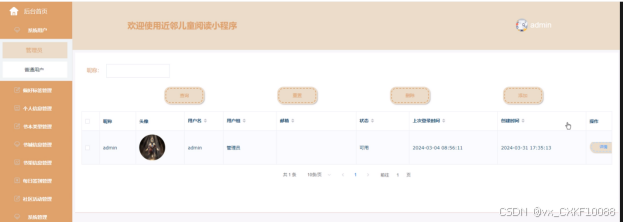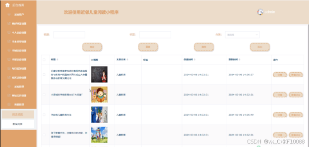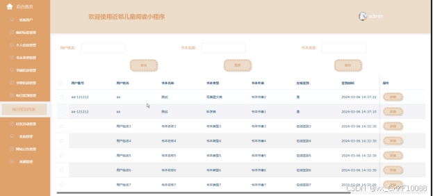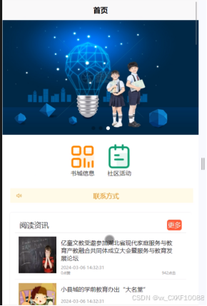 Keywords:Children's reading; Neighbors; We Chat Mini Program; Spring Boot