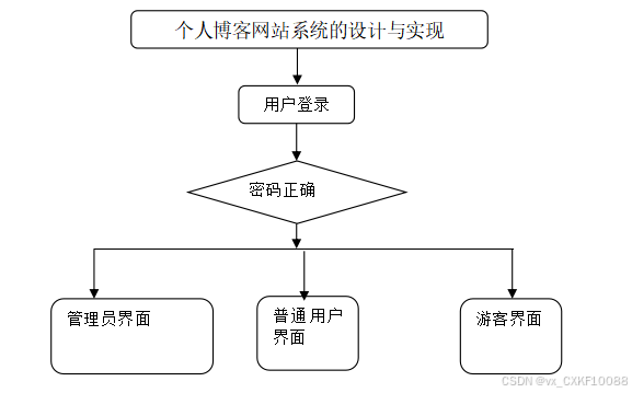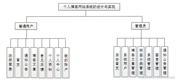 按照个人博客网站系统的设计与实现的角色,主要包括管理员和普通用户这两大功能模块,各模块功能内容如下: