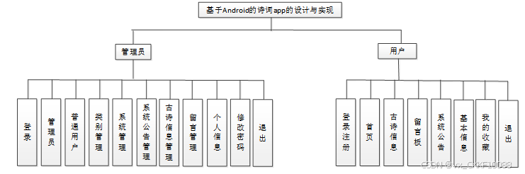 诗词app我划分为了普通用户管理模块和管理员模块这两大部分。