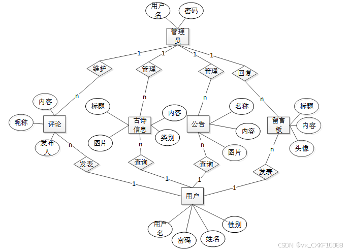 下面是整个诗词app中主要的数据库表总E-R实体关系图。