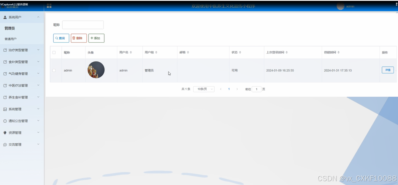 - 用户注册登录:用户注册为会员并登录中医养生文化宣传小程序;用户对个人信息的增删改查,比如个人资料,密码修改。