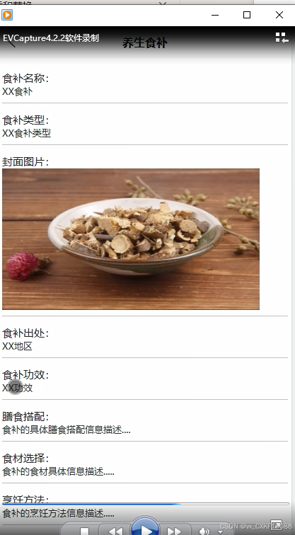 - 养生食补:推荐各种养生食谱和食材,介绍它们的营养价值和功效。用户可以根据自己的需求选择合适的食谱进行养生食补。
