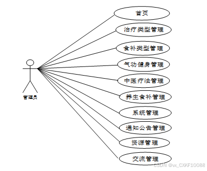 后台管理上的管理员是维护整个中医养生文化宣传小程序中所有数据信息的。管理员角色用例如图2-6所示。