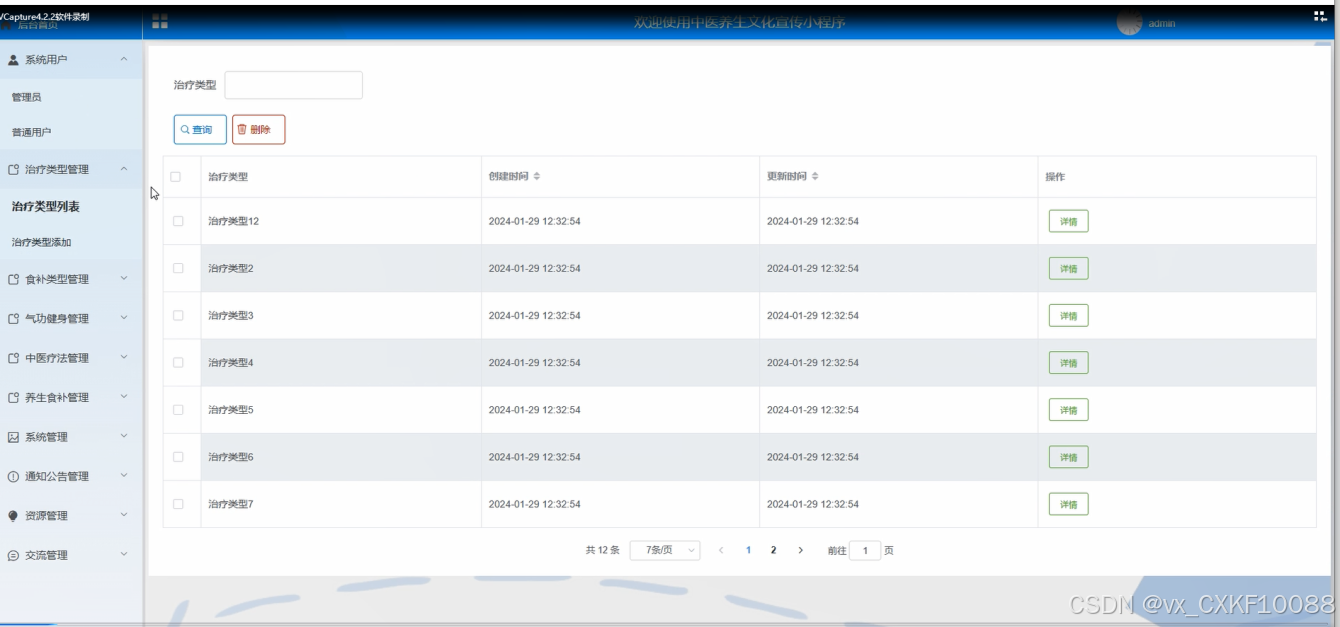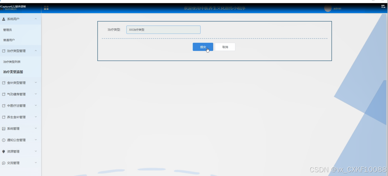 - 治疗类型管理:对中医疗法的分类和类型进行管理,可以添加、修改或删除不同的治疗类型。