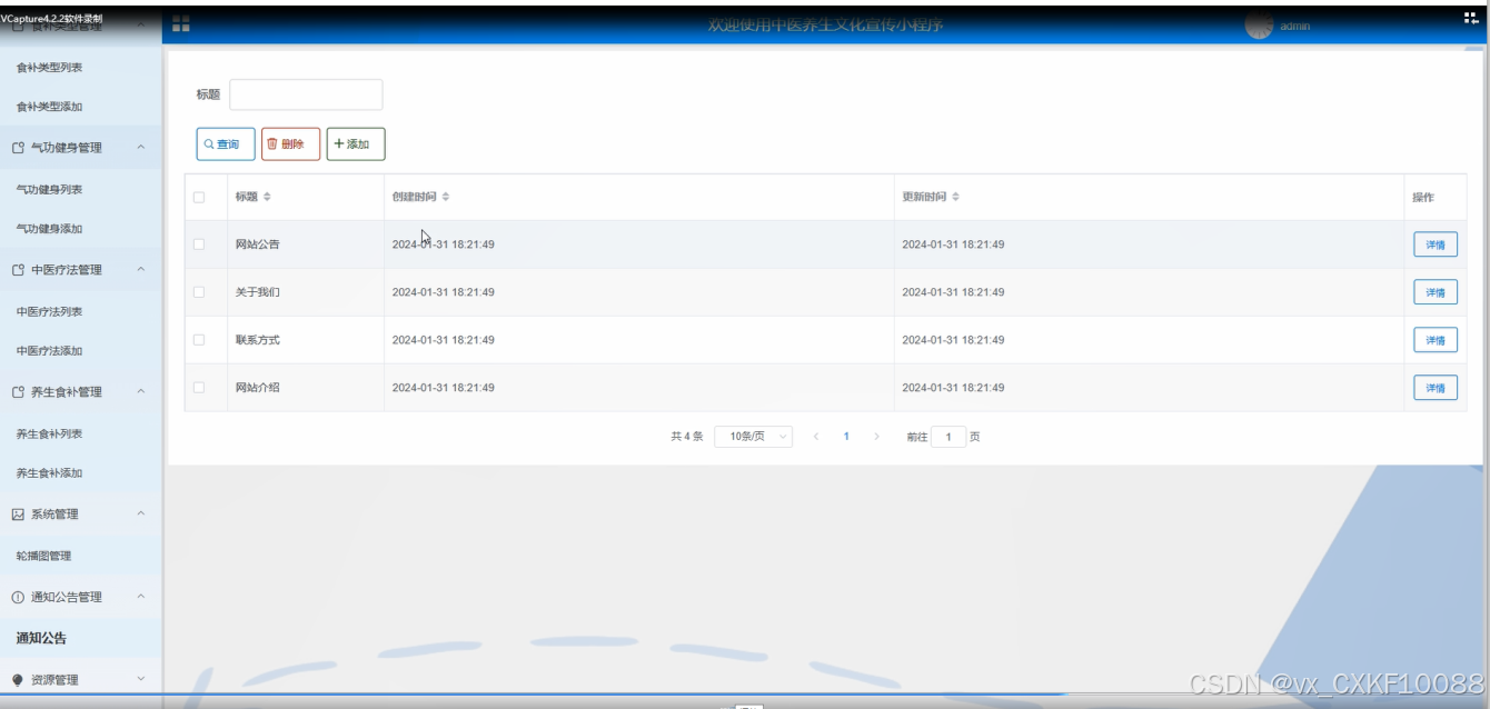 - 通知公告管理:发布、编辑和删除系统的通知公告,确保用户能够及时获取到相关的重要信息。