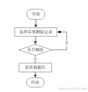 用户可选择要删除的信息进行信息删除操作,在删除信息时系统提示是否确定删除信息,是则删除信息成功,系统数据库将信息进行删除。删除信息流程图如图2-7所示。