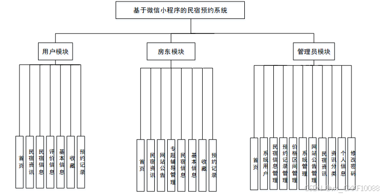 基于微信小程序的民宿预约系统我划分为了普通用户管理模块,房东用户管理模块和管理员模块这三大部分。
