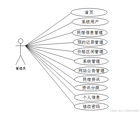 图2-3 基于微信小程序的民宿预约系统管理员角色用例图