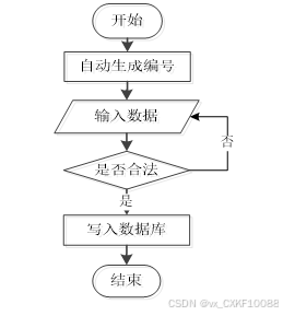 用户在添加信息时,信息编号自动生成,系统会对添加的信息进行验证,验证通过则添加至数据库,添加信息成功,反之添加失败。添加信息流程如图2-6所示。