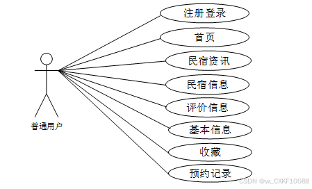 图2-1 基于微信小程序的民宿预约系统普通用户角色用例图