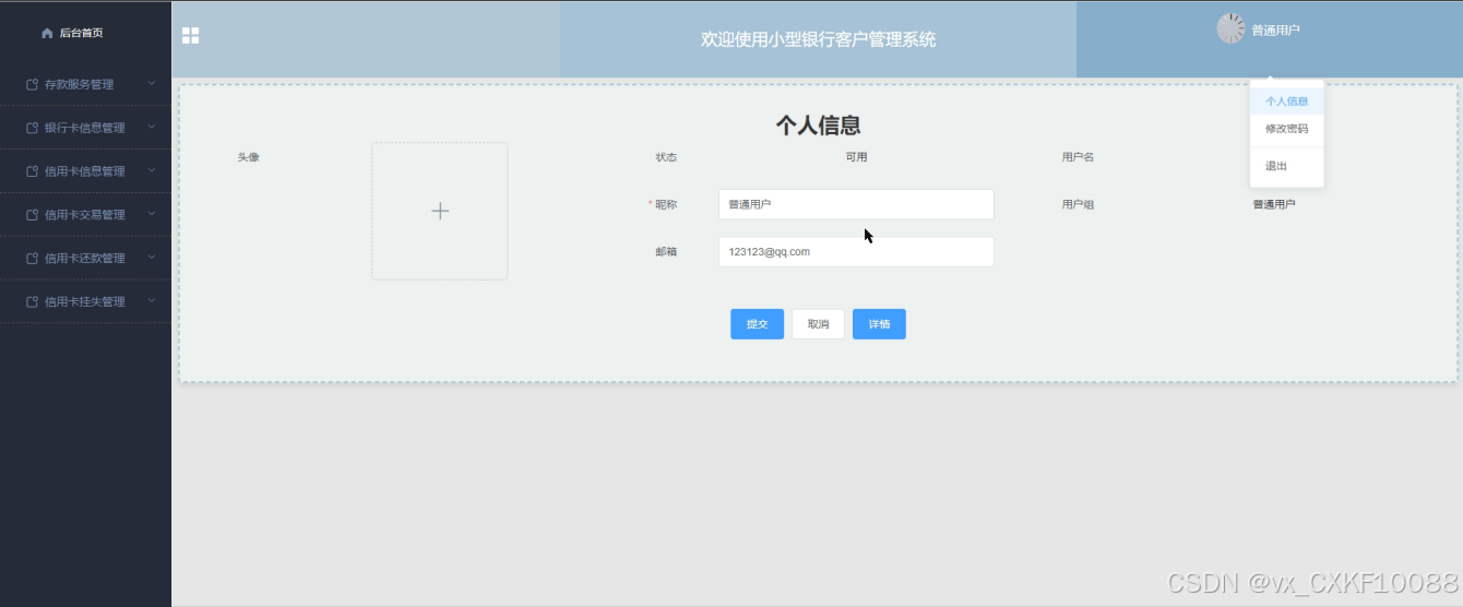 个人信息,在此页面可以对用户的个人信息进行修改重置等,如图5-3所示。