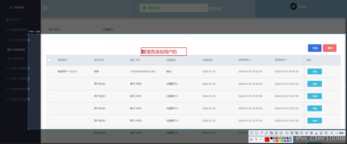 (5)管理员功能:系统需要提供管理员功能,管理员可以对系统的各个模块进行管理和监控。管理员可以添加、编辑、删除用户信息,审批信用卡申请,管理系统设置等。