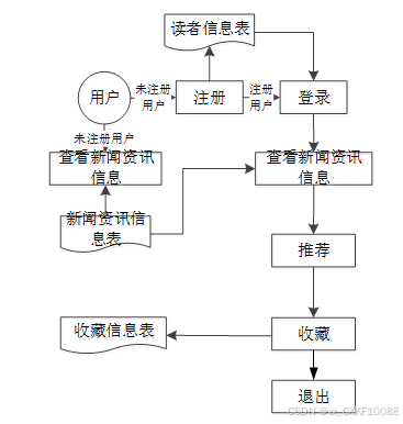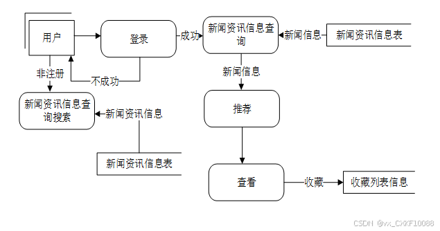 开发新闻推荐APP 最主要的一个目的就是实现用户对新闻资讯信息的查看收藏,图2-3就是系统的数据流图。