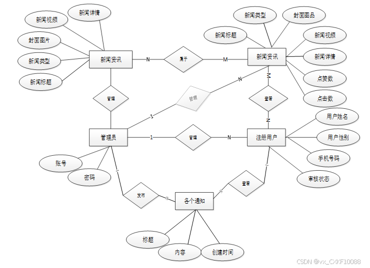 图3-5 新闻推荐APP 总E-R关系图