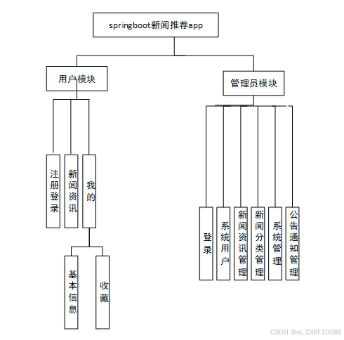 新闻推荐APP 最重要的一个功能就是预约,其模块功能结构,具体的结构图如下: