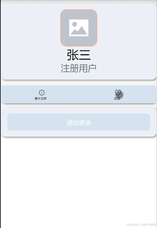 我的:在我的界面,用户可以对自己的基本信息进行修改以及查看收藏信息,我的展示页面如图4-5所示。