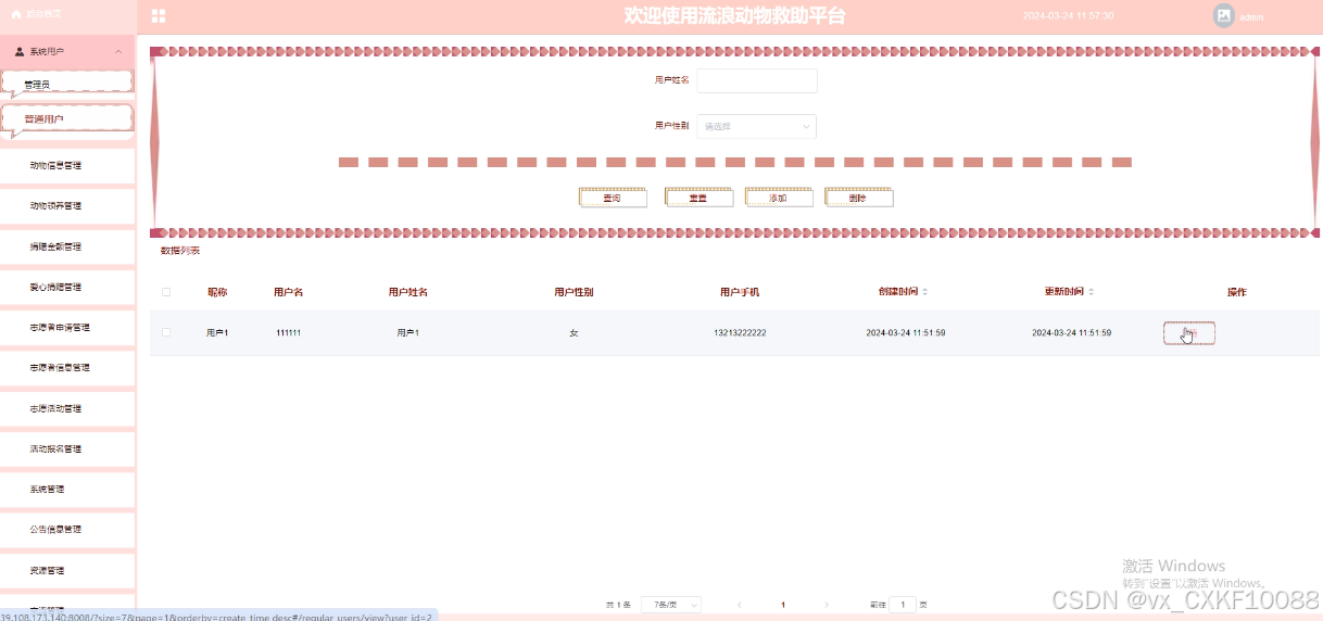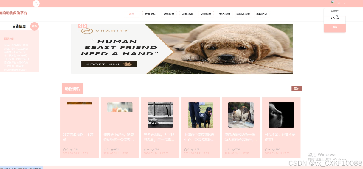 随着经济的发展和人们生活水平的提高,越来越多的人开始养宠物。然而,随之而来的是流浪动物问题的日益严重化。流浪动物不仅会给社会带来安全隐患,还会引发许多公共卫生问题,流浪动物问题逐渐成为社会关注的热点。流浪动物救助不仅关系到动物福利,也体现了社会的文明程度。因此,建立一个有效的流浪动物救助平台显得尤为重要。本研究旨在基于SpringBoot开发一套高效、可靠的流浪动物救助平台,以解决当前流浪动物问题的紧迫性和复杂性。通过系统的建立和应用,希望能够提高流浪动物救助的效率和可视化程度,提升公众参与的积极性,从而达到更好地解决流浪动物问题的目的。