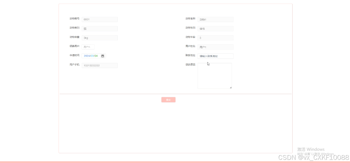 | 用例描述 | 管理员正确登录后台管理的条件下,对动物领养模块进行管理 |