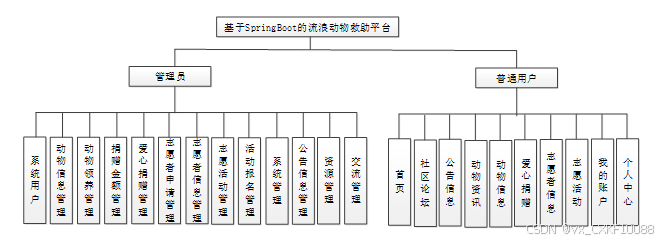 (3)在流浪动物救助平台中,首先要确定系统的技术,然后进行在线确认,以确定系统的用户角色,并根据这些角色划分出相应的功能模块。系统的设计主要将用户分为管理员和普通用户角色,每个角色都有其独特的特点,而且每个功能模块都有其特定的功能,但是系统的数据库都是交互式的,用户可以随时根据自身的需求查看动物救助信息,而系统的工作人员则可以根据自身的职责,处理和操作在线信息。管理员可以快速收集用户的详细信息,并能够在第一时间响应用户的需求。