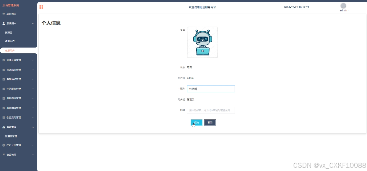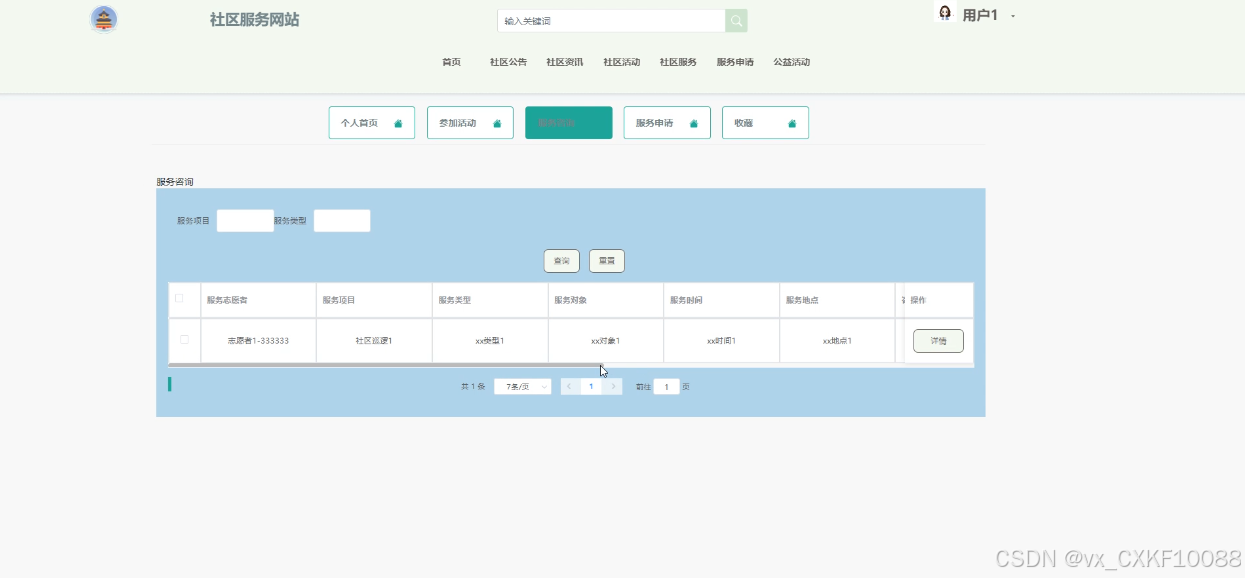 在该社区服务网站中,用户可以浏览社区服务的相关信息,同时,他们可以通过系统进行服务申请,此外,该社区服务网站还提供了个人信息管理功能,用户可以查看和编辑自己的个人信息,方便社区志愿者提供更准确和个性化的服务。