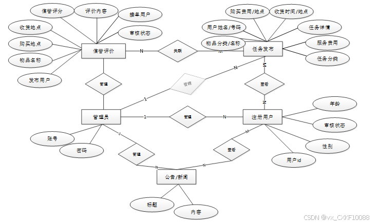 对于注册用户,系统设计了丰富的功能,包括首页展示、社交分享、网站公告与新闻浏览、任务发布、账户管理以及个人中心。在个人中心,用户可以查看个人首页、发布任务、接受任务、管理退货信息、进行信誉评价、查看消息通知以及进行社交分享。这些功能不仅提升了用户体验,还促进了用户之间的互助交流。对于管理员,系统提供了后台管理功能,包括系统用户管理、任务分类与发布管理、接受任务管理、退货信息管理、信誉评价管理、消息通知管理以及系统整体管理。管理员可以方便地管理用户信息、监控任务流程、处理退货事宜、维护系统公告与新闻资源,以及管理社交分享内容。这些功能确保了系统的稳定运行和有效管理。