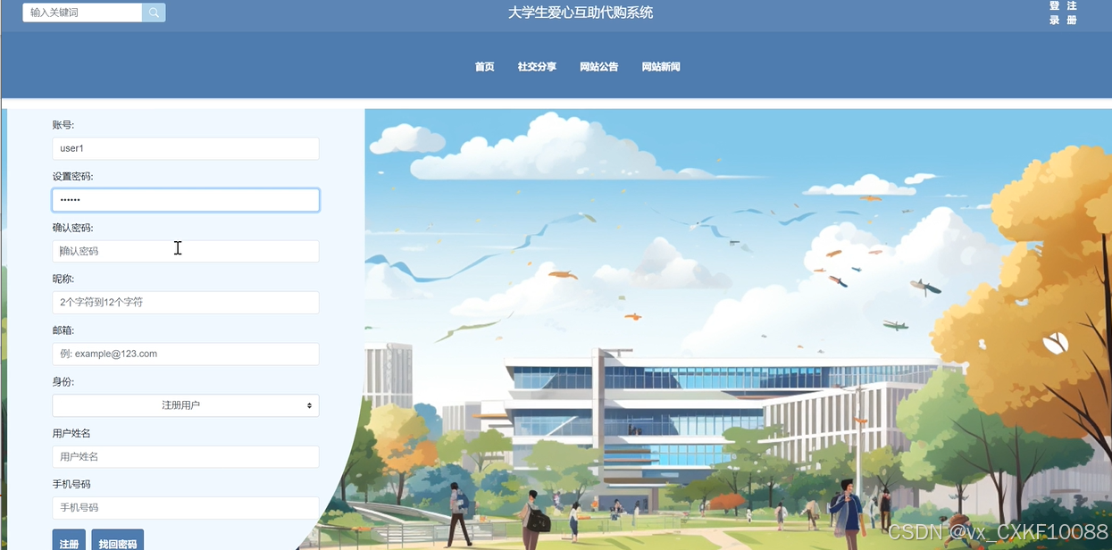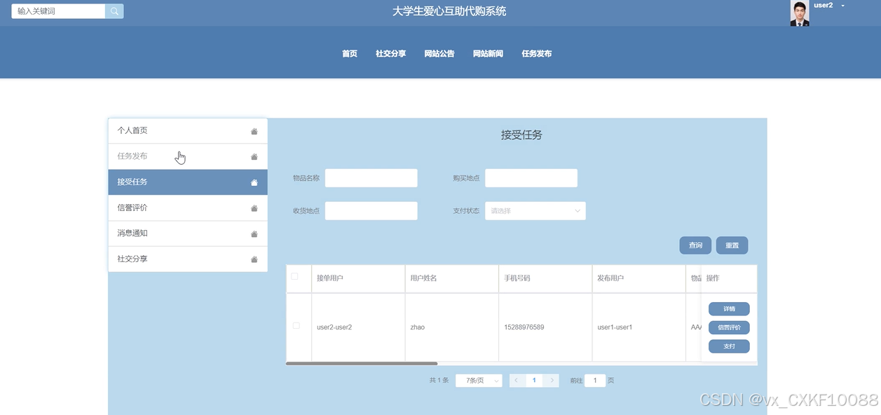 关键词:大学生爱心互助代购系统 ;Springboot框架;B/S架构